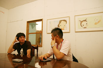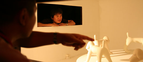 | 奈良 | それはもちろん、しなきゃいけない。 それが人に見せる責任だと思う。 だから展示するのを人に任せることは絶対にしません。 どこで展示するにしても必ず自分で下見して、 自分で場所決めて、絵の場所やら何やら全部決める。 どういう視点でどう見せるかっていうのも、 本当は自分の表現方法のひとつ。 ここにこうやって立ったらこう見えるんだよ っていうのを自然に誘導することは おろそかにはできないですね。 とくに、今回の「A to Z 」では そういう順路みたいなものがすごく大切でした。 ※この日は特別に撮影を許可していただいたのですが、 通常の「A to Z」は撮影禁止ですのでご注意ください。 ・・・・・「04 チーム」へ続きます |