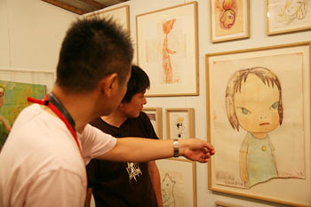 | 奈良 | ぼくの場合、デビューした当初は、 「へたくそ」って言われたんです。 それは、一般のお客さんのほうから。 いちおう、美術をやってる人からは 「うまいね」って言われてたんですが、 一般の人からは「うちの孫でも描ける絵だ」って(笑)。 言われるとわかってないなって思いながらも、 そう見えるかもなって、感じることもあったし。 だから、どう見られるかとかは あまり意識はしてないですね。 とくに、作品ひとつひとつをつくっているときは。 ![]() |