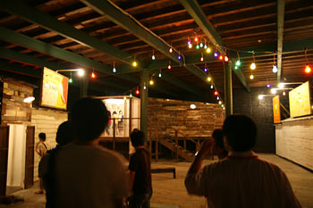 | 奈良 | そう。もう、何もない。 ぼくはここで2回ほど展覧会をさせてもらったんですけど、 市が「使いたい」って言ってきても全部断ってるそうです。 持ち主の方は僕より3回りも年上なんですけど、 この倉庫に対する信念があって、ぼくらみんな大好きなんです。 |