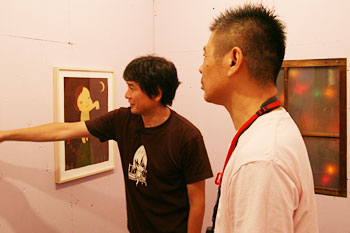 | 糸井 | 奈良さんは、ずーっとこの色を使ってる。 じゃあ、俺は何してるんだろう、とかね。 ずーっと自分を考えてましたね、案内されながら。 |