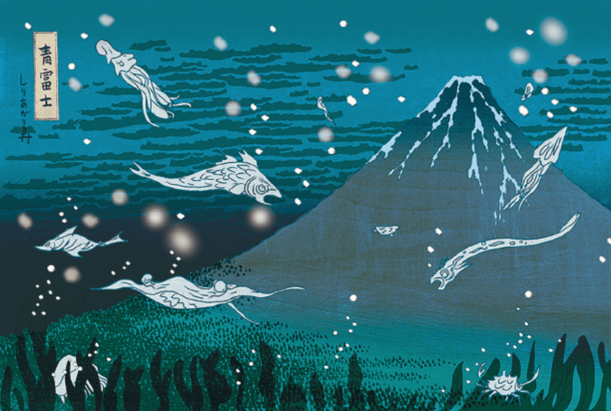 しりあがり寿「ちょっと可笑しなほぼ三十六景 青富士」©しりあがり寿 すみだ北斎美術館蔵(通期)