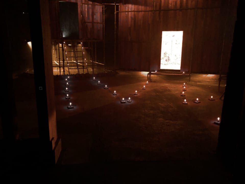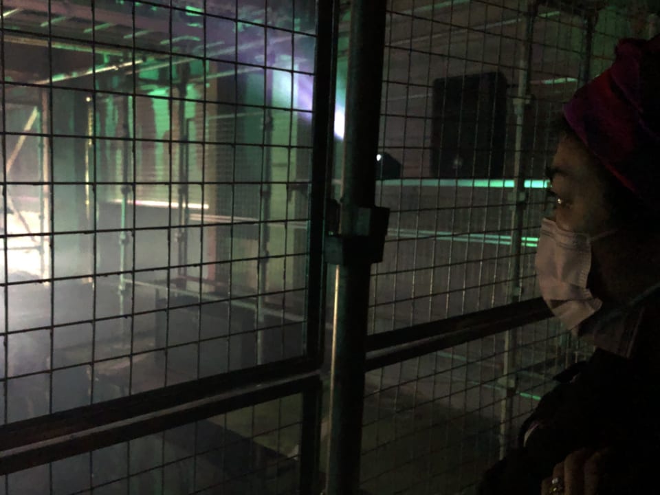 ひとつめの部屋を見終え、 踏み外さないようゆっくりと 階段を降りてくるマイコさん。 ドキドキ… (スタッフの方が足元を 照らしてくださってます。ご安心を)