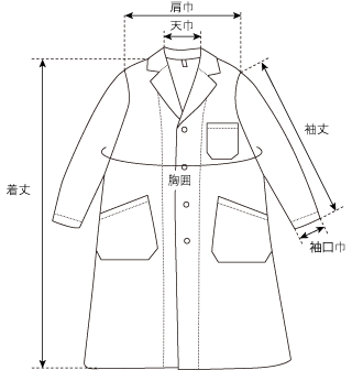 | 着丈 | 肩巾 | 胸囲 | 袖丈 | 袖口巾 | 天巾 | |