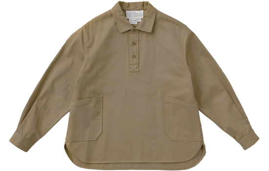 短めの丈と広めの身巾が特長のプルオーバーシャツは、