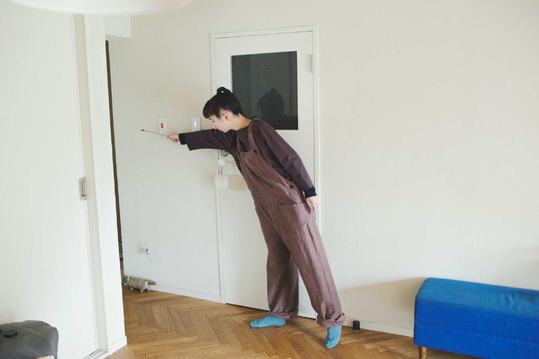 洗いものなどがしやすいよう、袖は思い切って短めに。