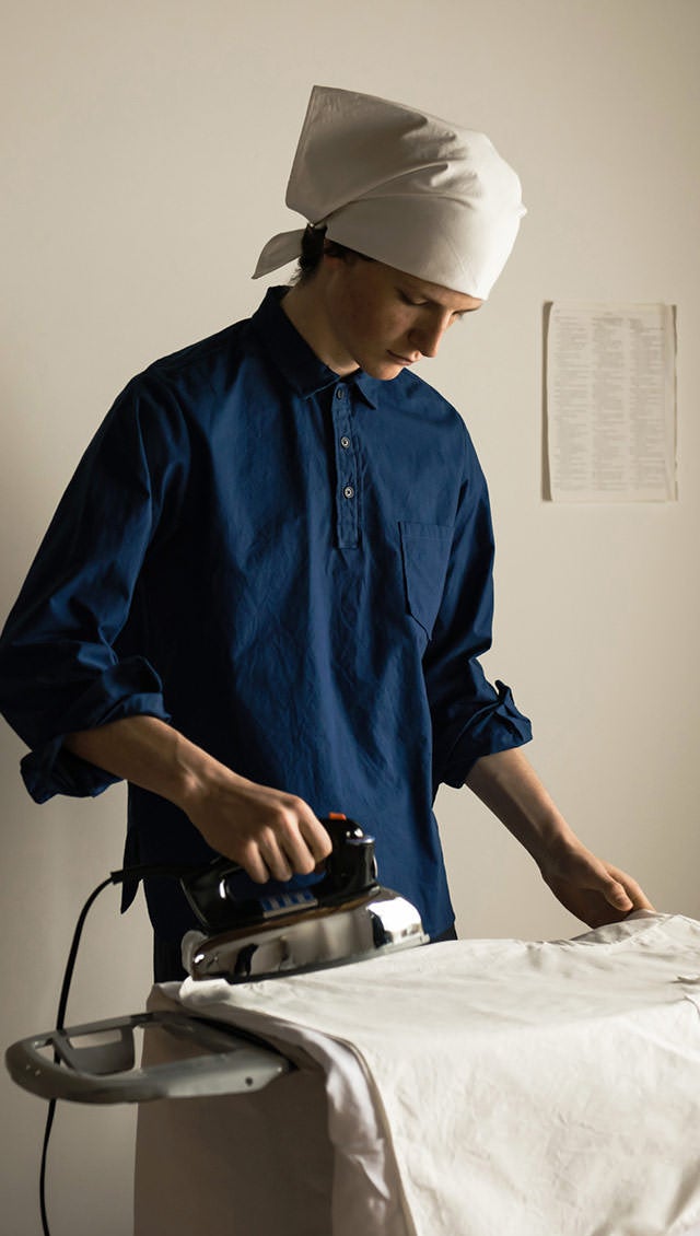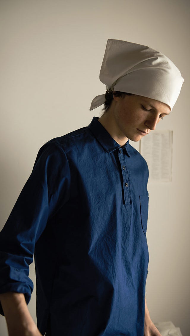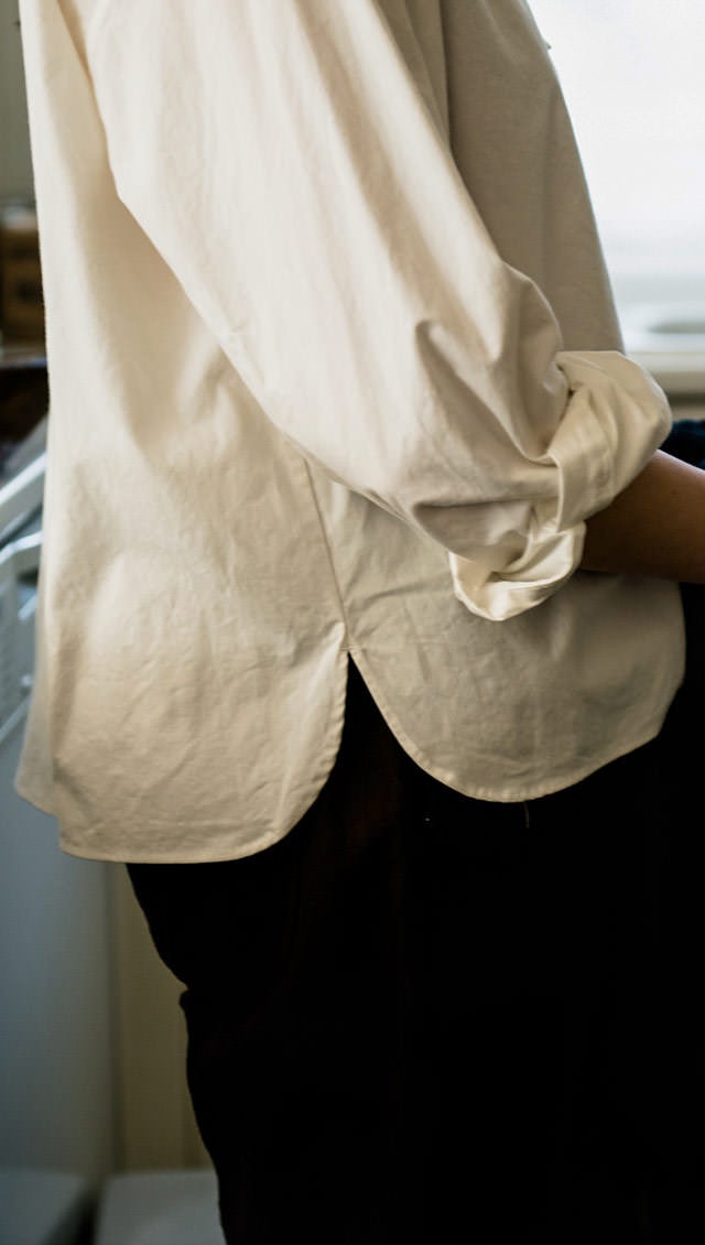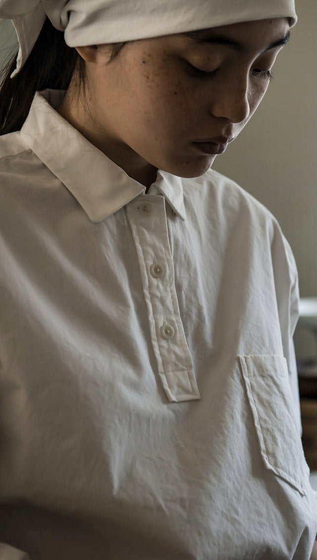 短めの丈と広めの身巾が特長のプルオーバーシャツは、