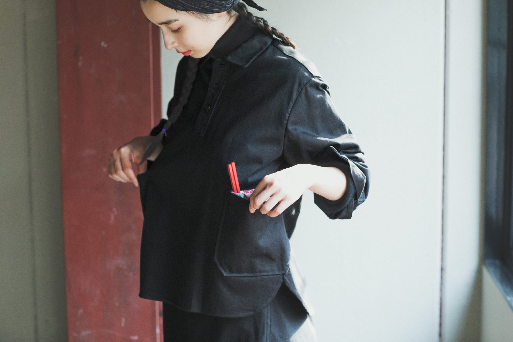作業の妨げにならないよう、袖丈は短めに。