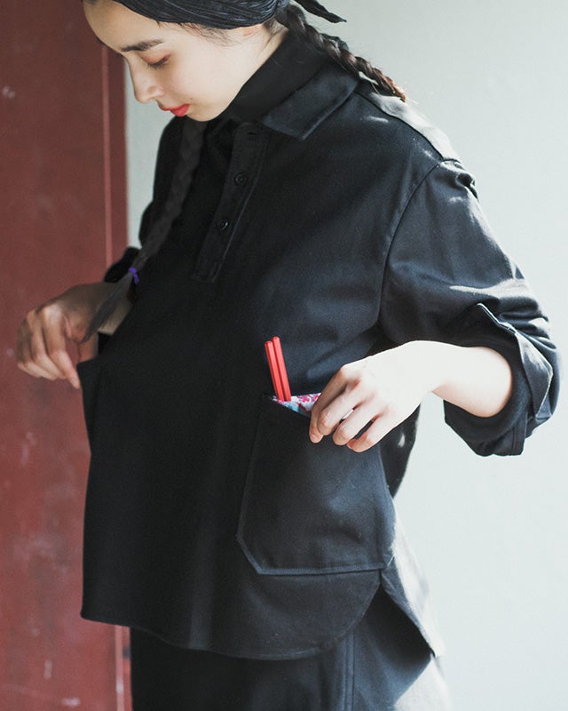 短めの丈と広めの身巾が特長のプルオーバーシャツは、