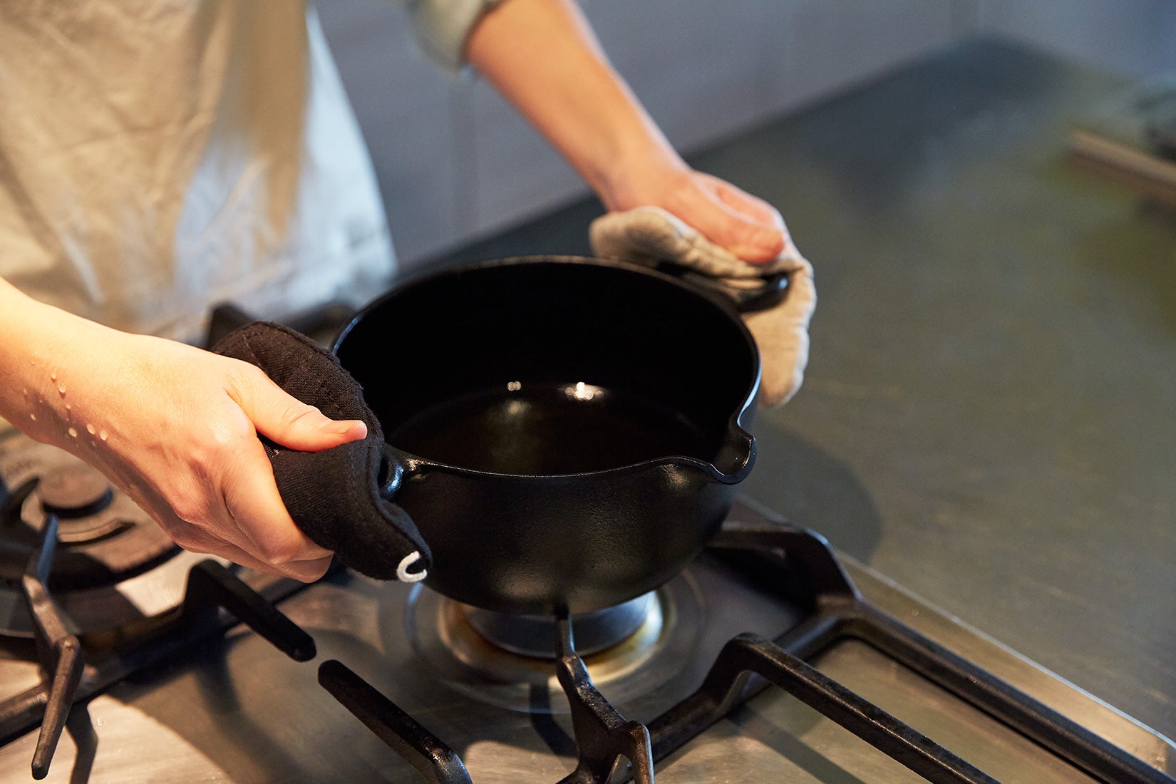 取っ手をつかんで、油を処理するときや、