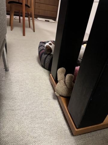 ブイコが、先代のブイヨンのようにジャックラッセルテリア気質濃いめだったら、老夫婦は、たいへんに手を焼くことになったであろう。