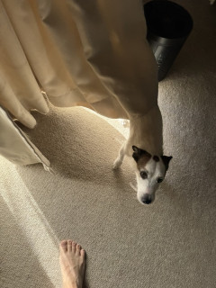昨日に続いて、今朝も、カーテンの向こうから、光とともに登場でした。