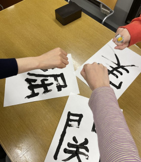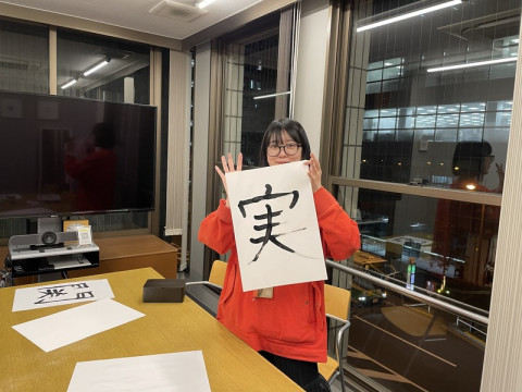 指習字 新しく入社した乗組員は、ほぼ全社員が集まる水曜ミーティングで、自己紹介の機会を設けてもらいます。 インターン生だった 事前に、どういうふうに自己紹介をするか話し合い、 「書き初めみたいに、これからの決意を漢字一文字で書いて発表しよう!」 ということになりました。 ところが、筆と墨汁と半紙がありませんでした。 筆と墨汁と半紙さえあれば、よかったのに。 苦肉の策で、絵の具を指につけてコピー用紙に書いたのですが、思った以上にたのしくてよかったです。 実際に自己紹介の場で出したときも、なかなか好評で安心しました。 私は、さっそくロッカーに貼って、いつでも初心を思い出せるようにしてみました。 それぞれの漢字に 「こんな決意が込められているのかな?」と思いつかれましたら、ぜひ、大喜利のような感じで、メールなどいただけましたらうれしいです! 1年後、達成できたかの振り返りも兼ねて、 「製作中」で答え合わせをしたいと思います (ちゃんと覚えているかな‥‥)。 2024/04/10 14:31 |
