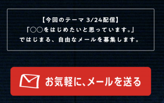「◯◯をはじめたいと思っています。」 日曜の夜におじゃまします、 「プレイバックほぼ日!」からのおしらせです。 先週は入社4ヶ月の乗組員、小河さんが来てくれてたのしく盛り上がったのですが、たのしいまんまで番組を終わらせ、大切なことを言い忘れてしまいました。 募集するメールのテーマを! なんということだ‥‥。 当然のことですが、まだそのテーマでのメールは届いていません。 あらためまして‥‥ 「◯◯をはじめたいと思っています。」 ではじまるメールをお寄せください! もう、4月ですからね。 なにかをはじめる季節かなと思ってこのテーマに決めました。 「ジョギングをはじめたいと思っています。」 「語学の勉強はじめたいと思っています。」 「ピアノをはじめたいと思っています。」 「規則的な生活をはじめたいと思っています。」 些細なことから大きな夢まで、なんでもかまいません。 いま、なんとなく、はじめたいなぁと思っていることを自由にメールに書いてお送りください。 それでは、月曜夜8時にお会いしましょう。 ああ‥‥「うっかり」をすくなくすることをはじめたい‥‥。 どうすればいいんだろう。 2025/03/23 20:00 |