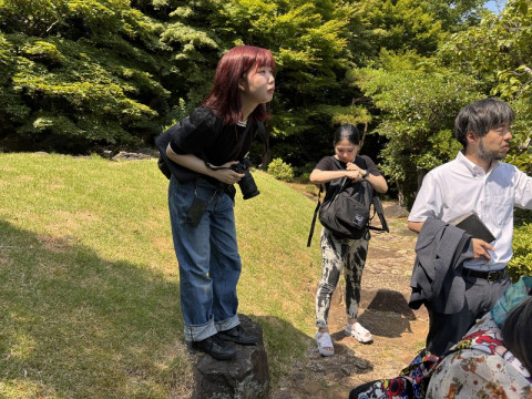 みんなで建築観察、その2。 「ほぼ日建築観察部」(?)、今日もみんなで、かっこいい建築をめぐっています。 ‥‥と、この企画の発起人的存在、建築大好き 解説してくださるかたがちょっと「あそこのあれは〜」と教えてくださるたびに、もう、走っていって、吸い寄せられるように嬉しそうにじっと見ています。 なんだかもう、そういうことを学びたくて生きている動物のよう。 見学が終わったあとはあとで、 「あの話ははじめて知りました!」などとずっと言っています。マニアだ。 でも、こうやってみんなでくわしい方に教えてもらいながら、 「ここが好き」「面白ーい」 など他の人の様子を見ながら見てまわるの、自分の興味ポイントがどんどん増えていく感じで、非常にいい感じです。 今日のぼくの発見は 「自分、庭、好きかも‥‥!」 ということでした。 緑と建物と美しく調和してる庭ってずっとその場所にいたくなるものなんだなあと。 ひとまず、今日お名前が出てきた小川治兵衛さん、そして重森三玲さんという方の庭をいろいろ見てみたいなあ、と思っています。 2025/06/30 17:44 |