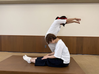と私ががんばって数字の「5」を身体であらわした写真です。