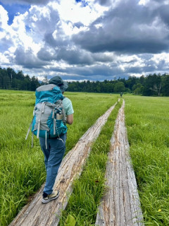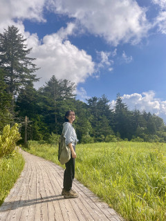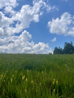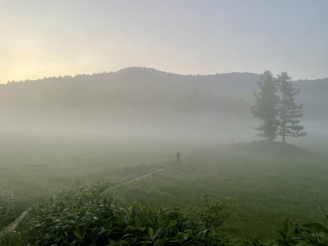 真夏の尾瀬へ。 「尾瀬とほぼ日」メンバー ぬけるような青い空と、 もくもくとしたいかにも夏らしい雲と、ふかい緑。 ‥‥と思ったら、目の前をスイスイとたくさんのトンボが横切って、真夏のようでいて秋の気配がもうすぐそこまで やってきているようでした。 滞在中には、いろんなことをしましたよー。 たとえば、物資を運んでくるヘリコプターから みんなで荷物をおろす、なんていう めったにできない体験をしたり。 (これについては、のちほどあらためて!) yozoraのkazeキャミワンピとシャツを 試着してもらって、感想を聞いたり、ときには、小屋の喫茶室の窓から山の景色をながめつつ、 しずかに集中して仕事をしたり。 なかでも、いちばんのごほうびは、朝のおさんぽでした。 日の出にあわせて小屋を出ると、 あたりは朝もやに包まれて、 それはもう、幻想的で。 鳥たちの声も豊かにきこえてきて、 「ああ、みんな、来れたらいいな」と何度もつぶやいてしまいました。 ふだんの暮らしではなかなか出会えない雄大な自然のまんなかにいるのに、 そこにはちゃんと、過ごしやすい場所が用意されている。 山道を歩いて、やっとたどりつく場所だけど、 だからこそ「ああ、いいなあ!」って 本気で思ってしまいました。 行くたびにまったくちがう表情になる、という尾瀬。 これを書いているのは帰り道ですが、すでに、また行きたくなっています。 2025/08/01 10:01 |