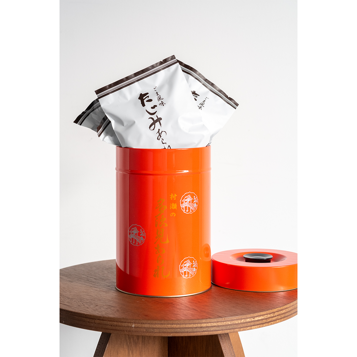 「村瀬の多治見あられ ごま風味」(缶入り)。