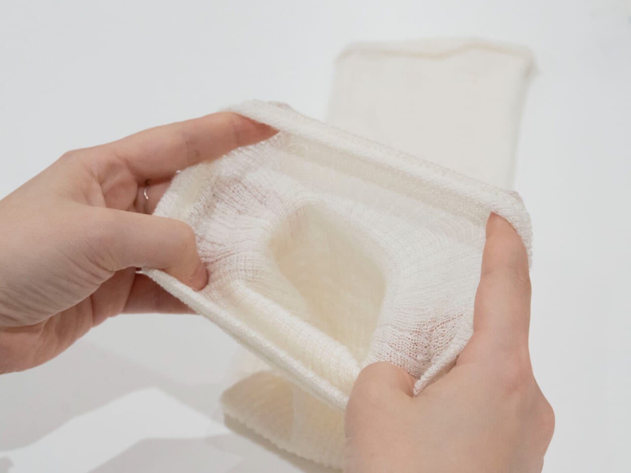 肌に触れる内側はシルクのパイル編みで仕上げています。