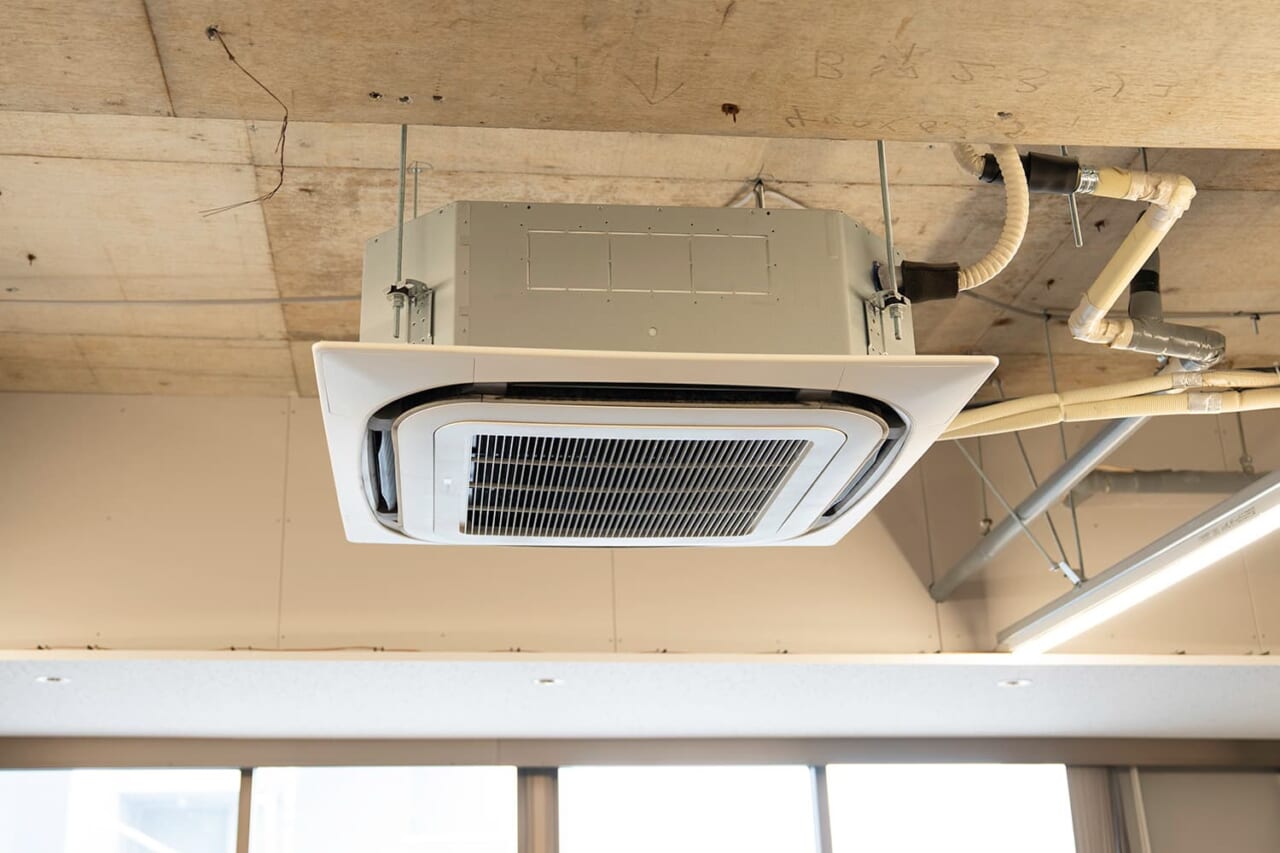 でも、このオフィスは天井がパネルで覆われていない