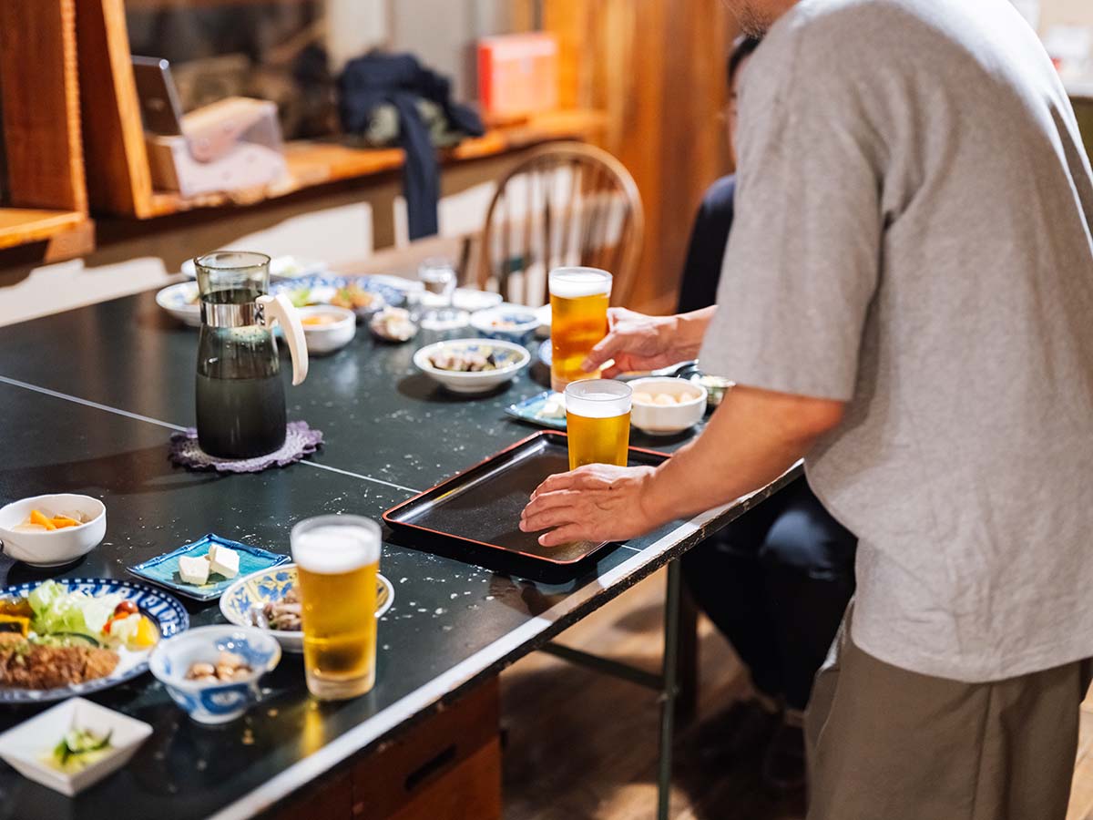 - 食堂や談話室で、オーナーの和さんや千世さん、