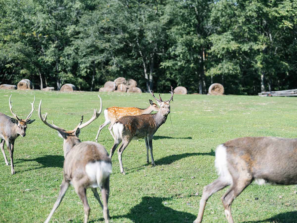 - 村の鹿牧場に出かけ、間近でエゾシカを
