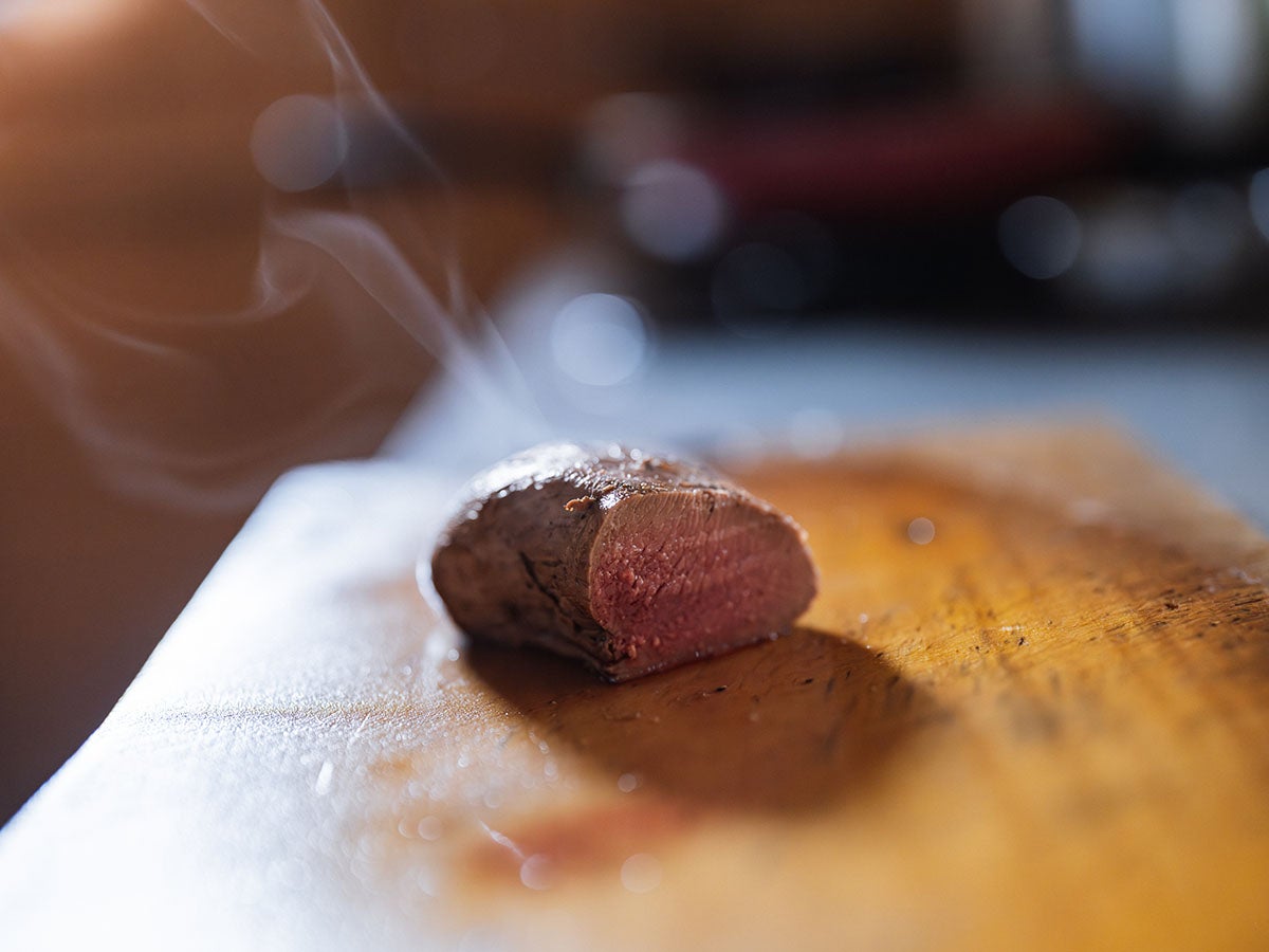 - おどろくのが、野生のシカ肉の見事なおいしさ。