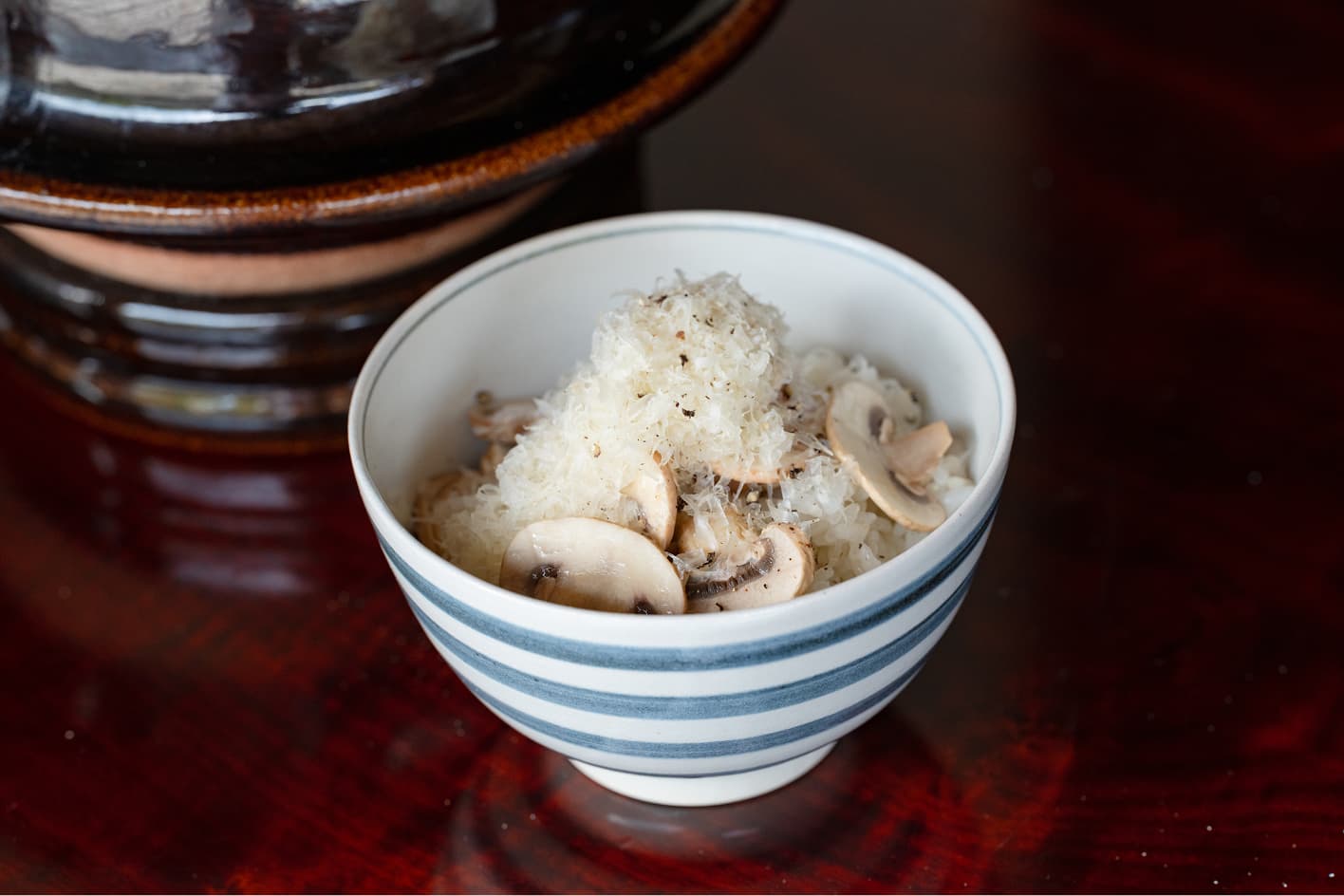 たっぷり容量のある合鹿碗から、