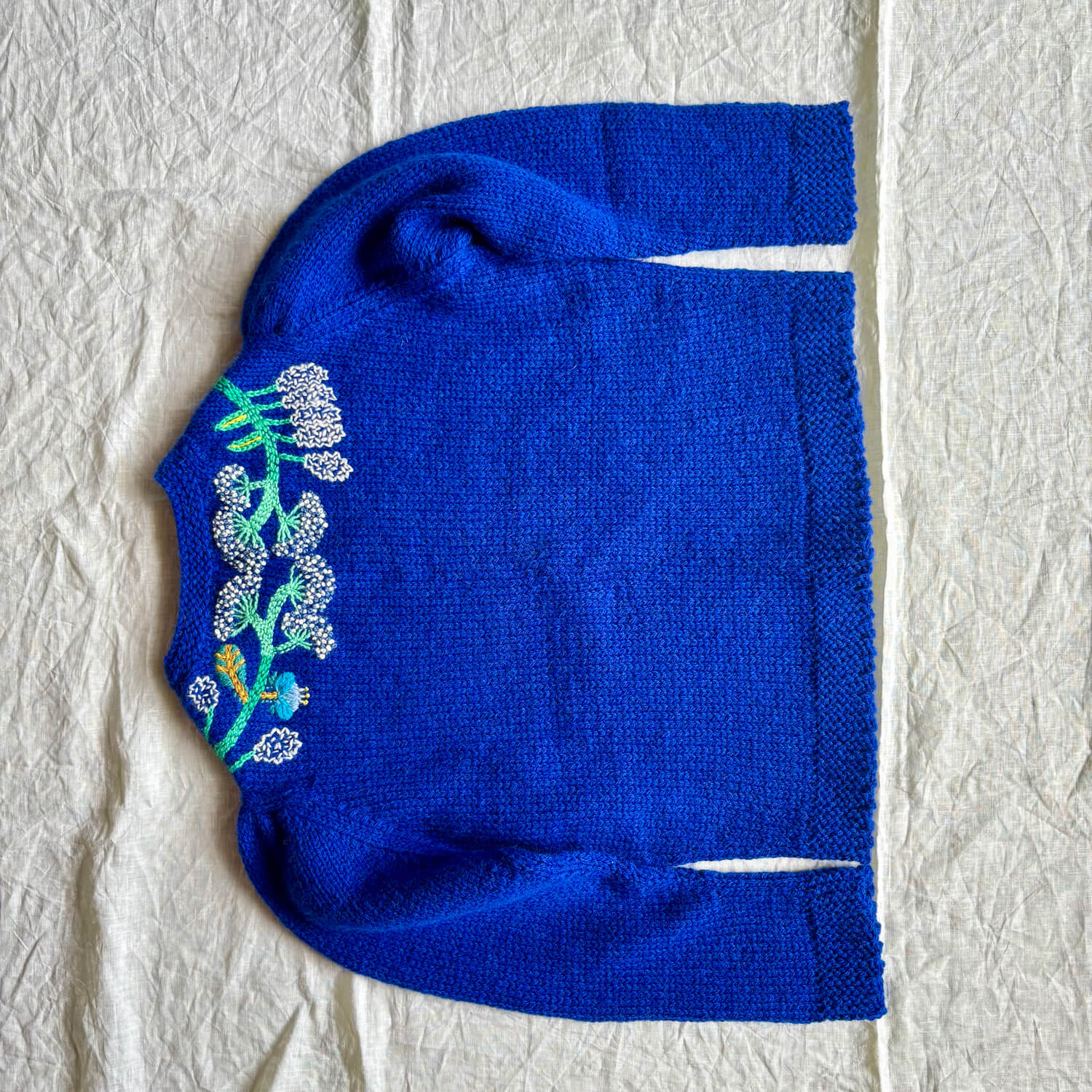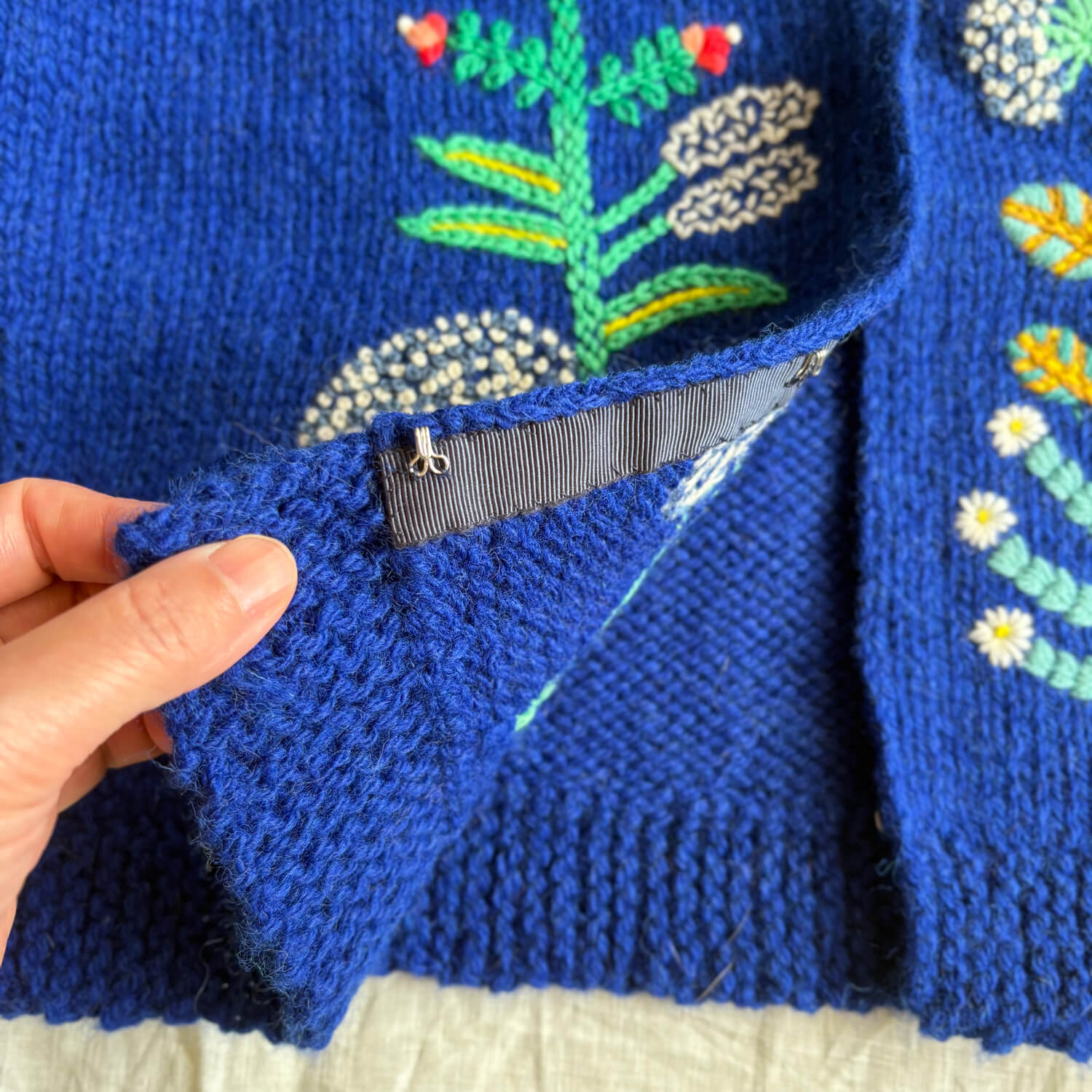前開きはグログランリボンにホックを付けて完成!ウール刺繍、刺してる間は