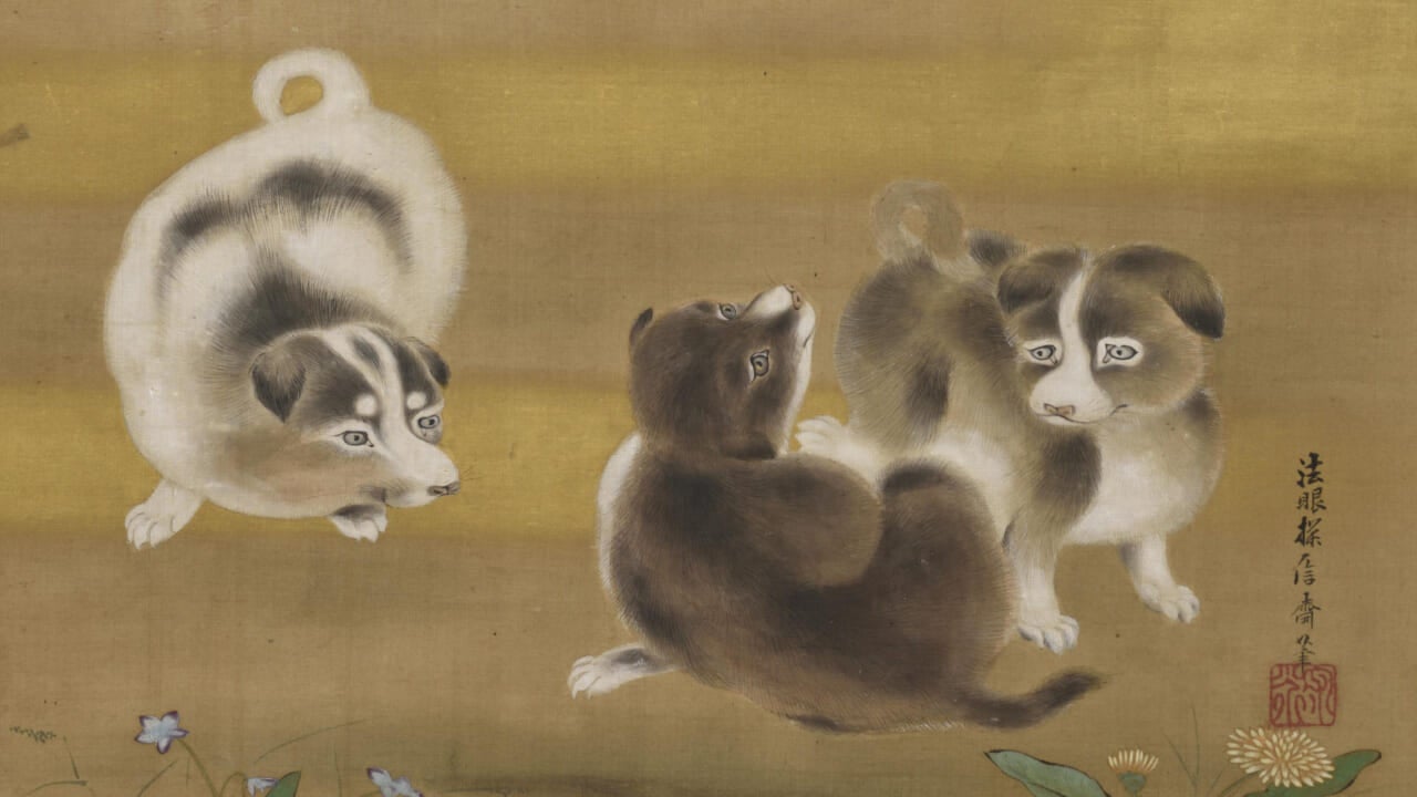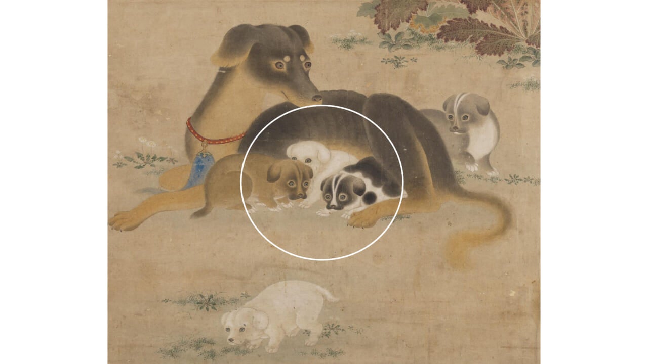 中国で言うと、宋の時代に子犬の絵が描かれています。 - この絵は、それよりあとの時代、明のものです。