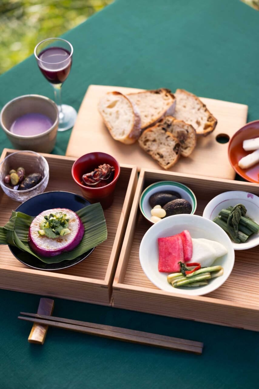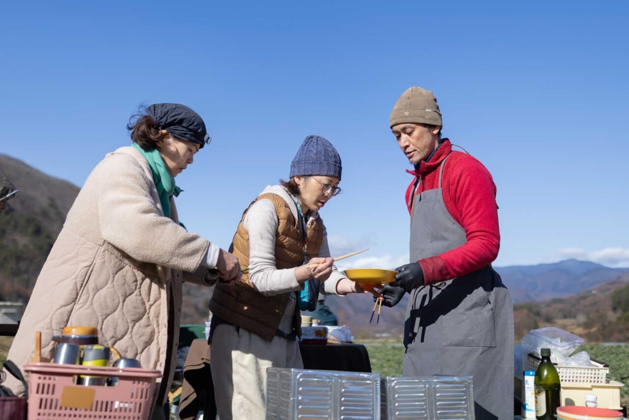 ▲伝統野菜の保平カブをアウトドアクッキング。温かいまま食事を提供する工夫も凝らされています