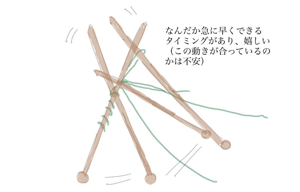 5目めぐらいで右の編み棒から糸が抜けちゃって、