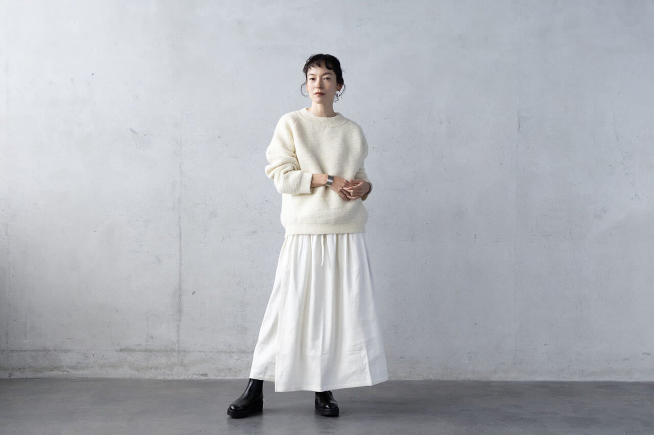 「綾織絹麻巻きスカート」は昨シーズンからの継続商品。