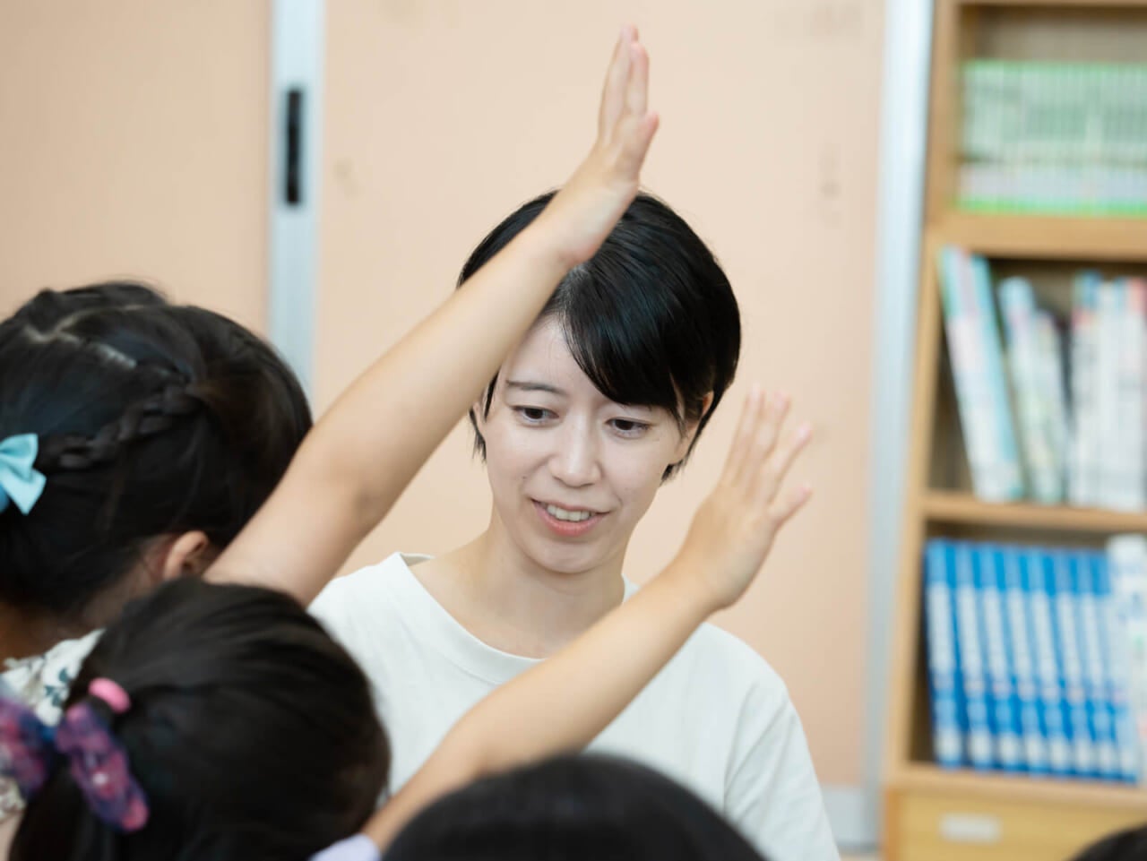 自分の番が終わったら、次の子にぬいぐるみを渡します。