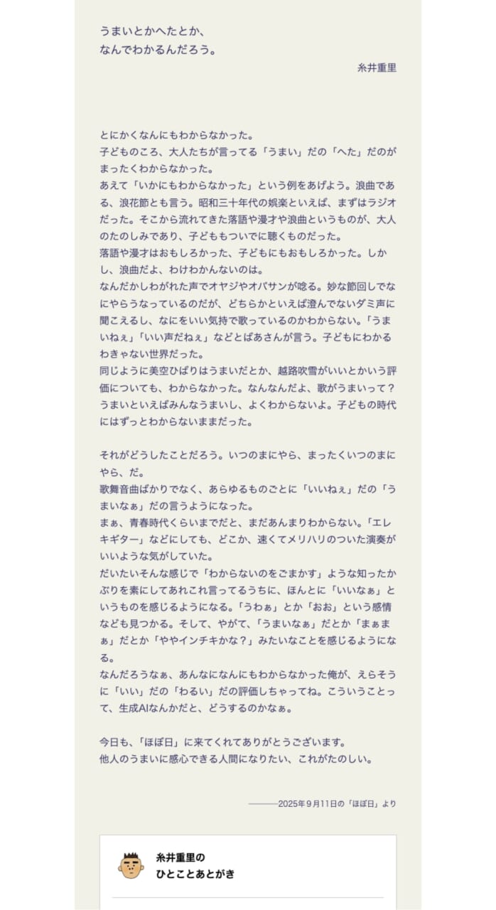 糸井重里が書く「ほぼ日」トップページのコラムから、よりぬきのものを毎週ひとつ、「あとがき(ここでしか読めない!)」つきで掲載します。