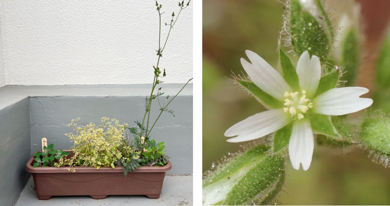 右半分は、屋上の園芸プランターにすでにいる雑草を