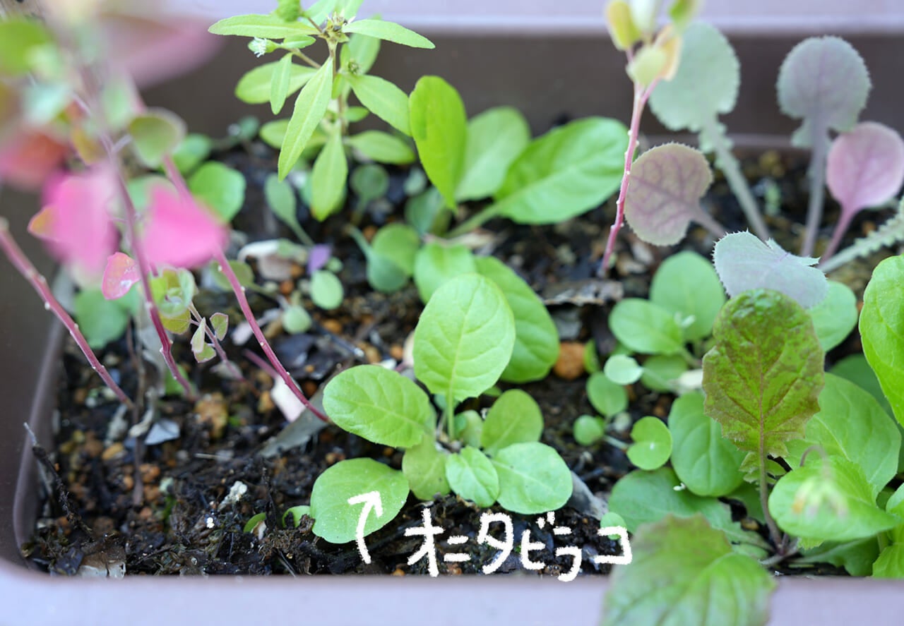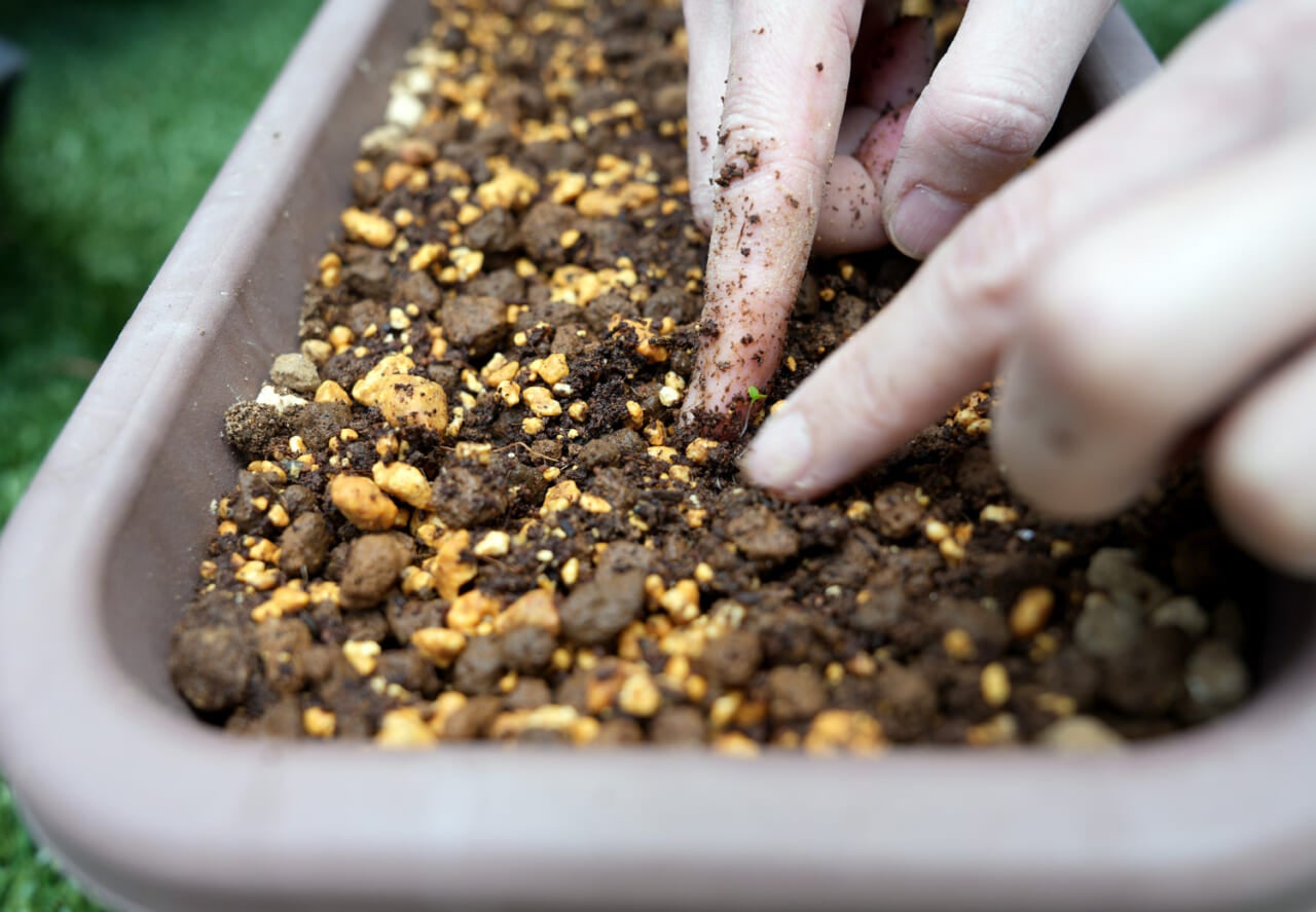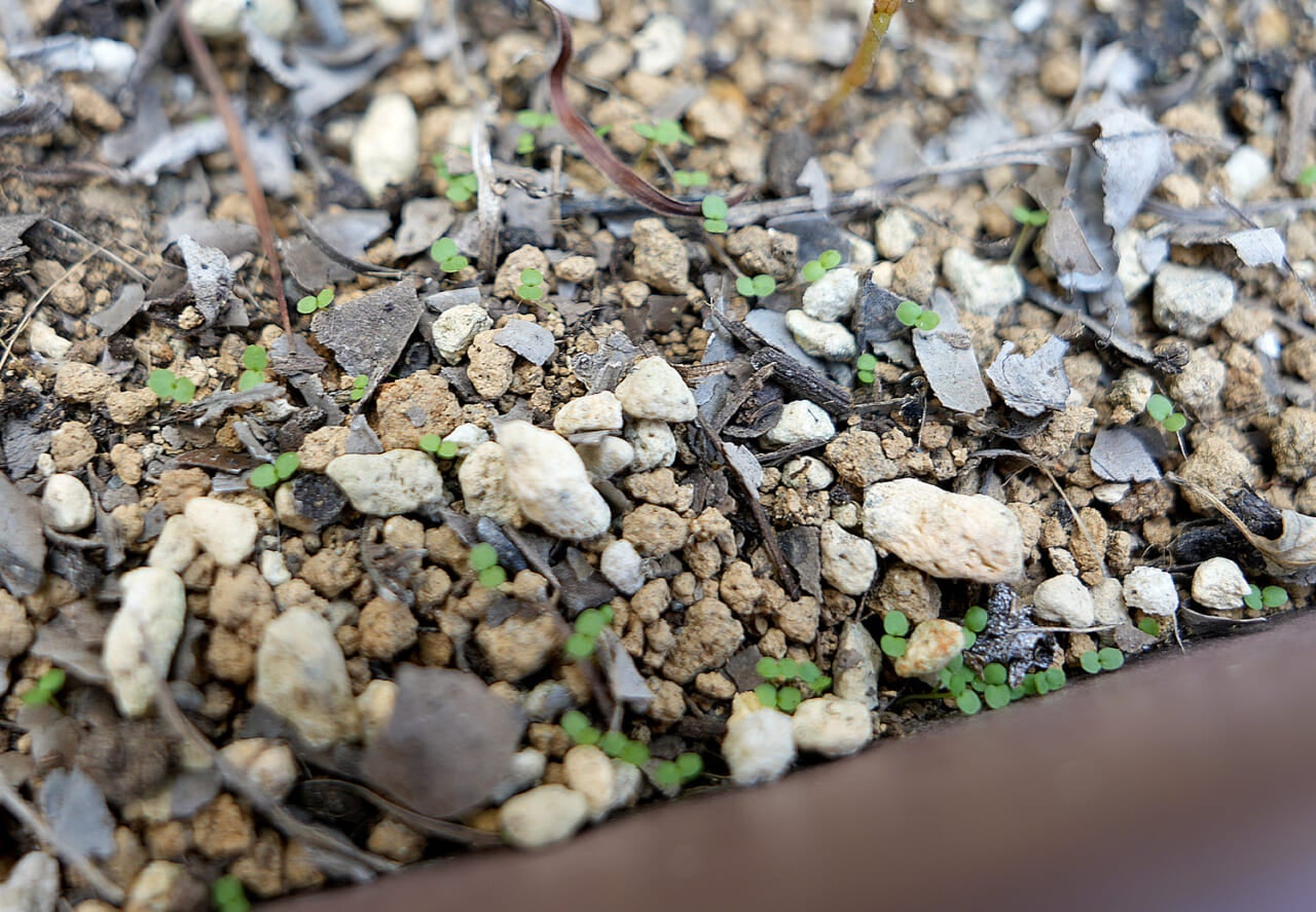 小さな芽生えが多くて土を混ぜにくいですね。