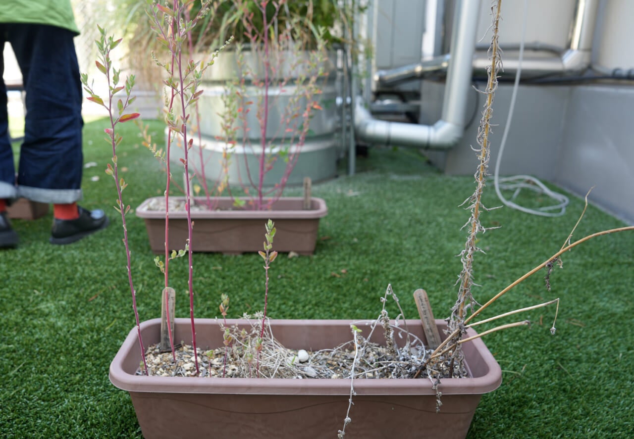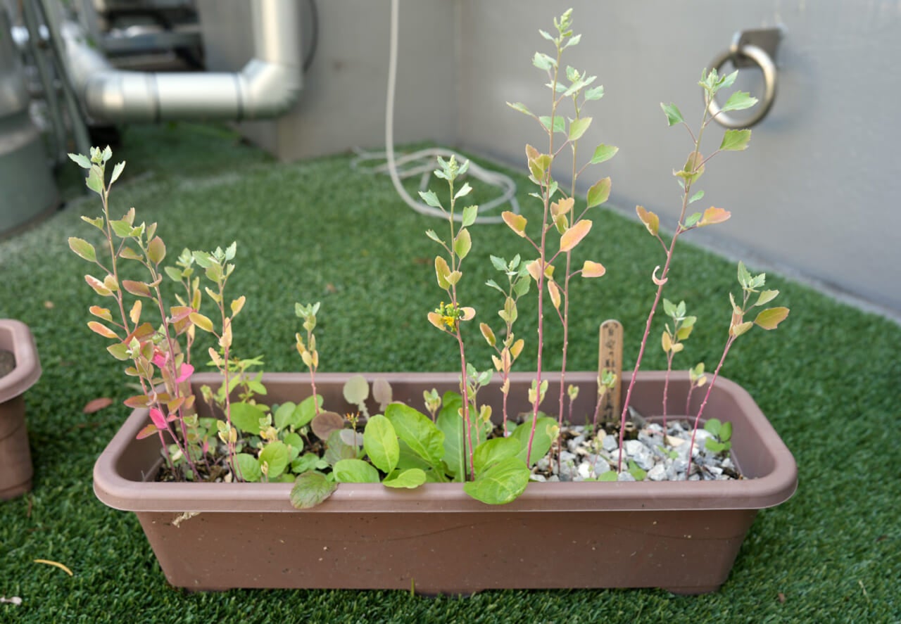 屋上のプランターで雑草を育ててみたり、