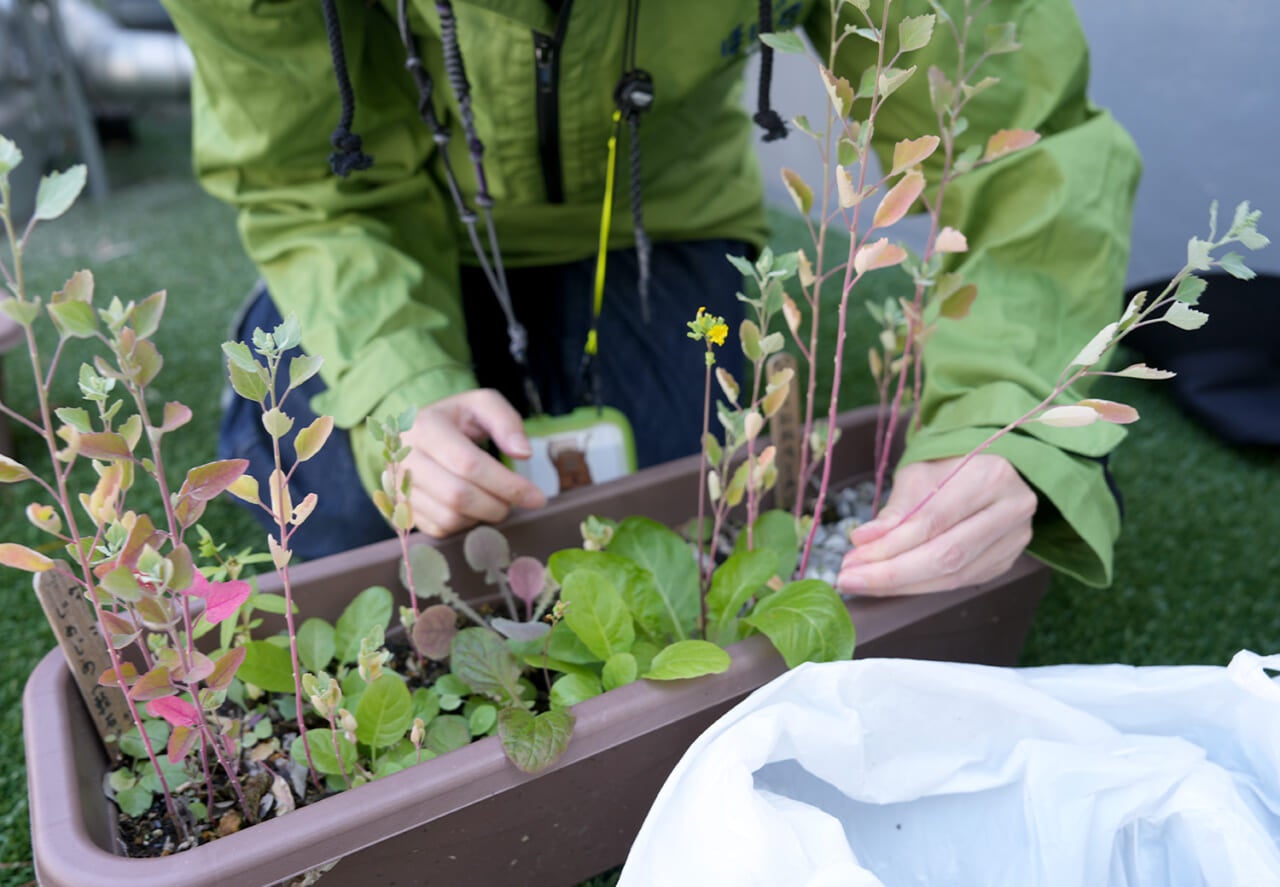 それぞれのプランターを見ながら、