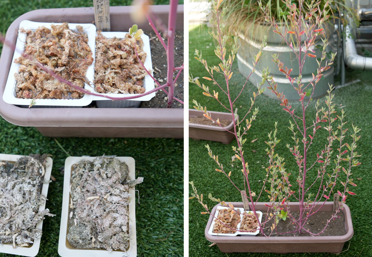 右半分は屋上にいた雑草を移植したエリアです。