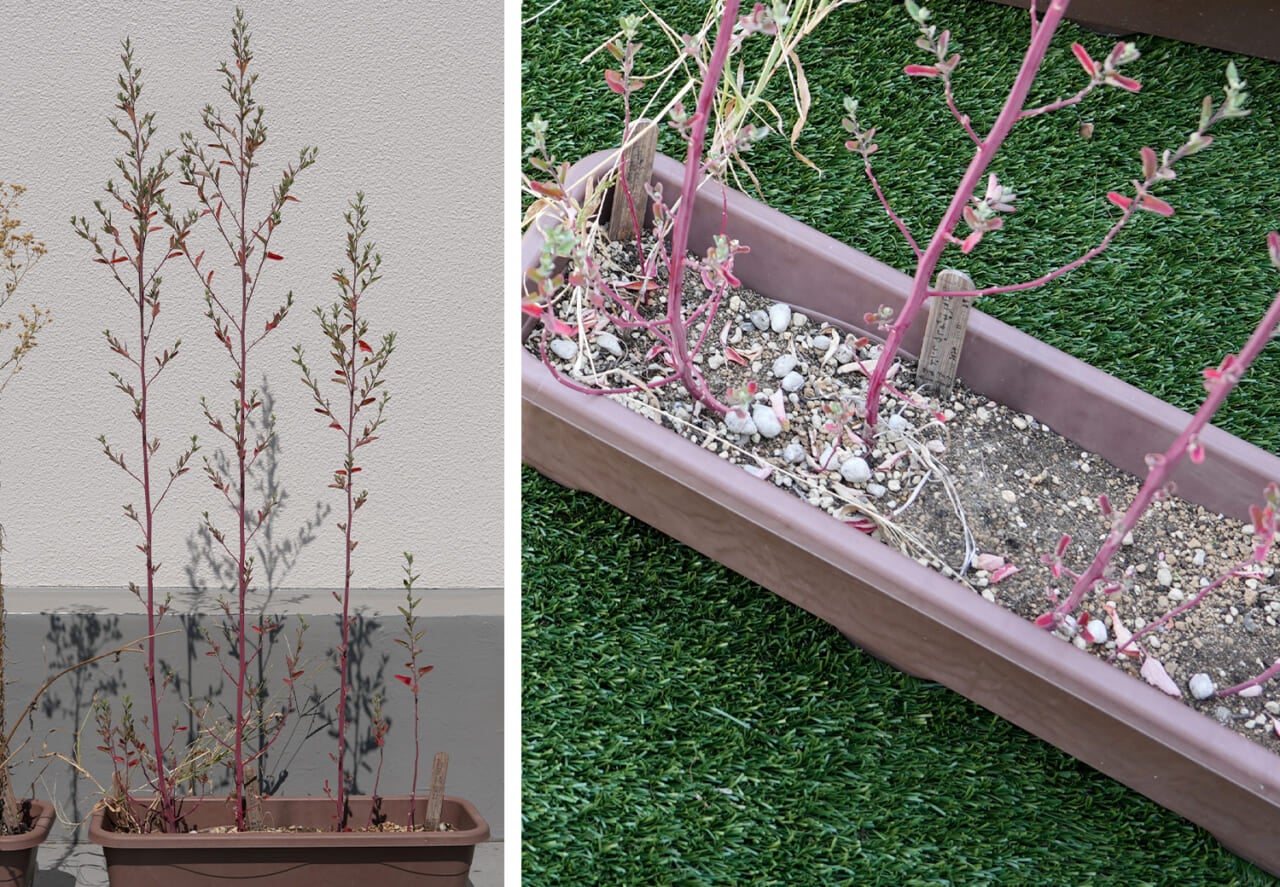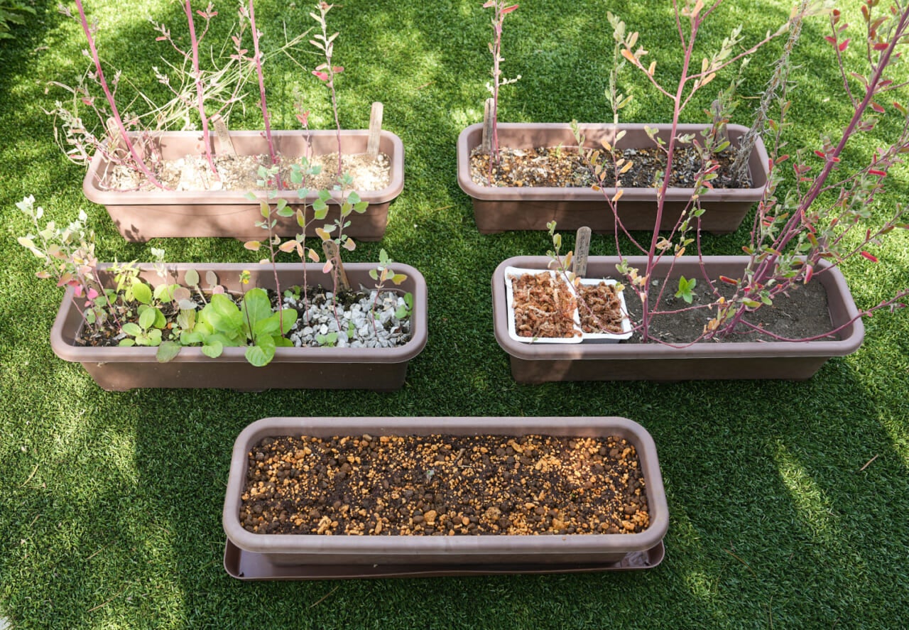 - それぞれの雑草プランターに今生えているものと、