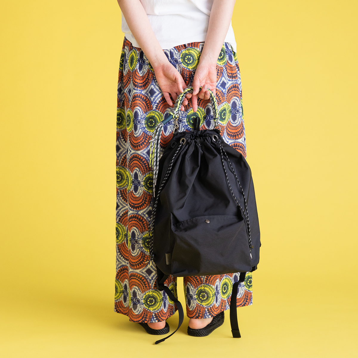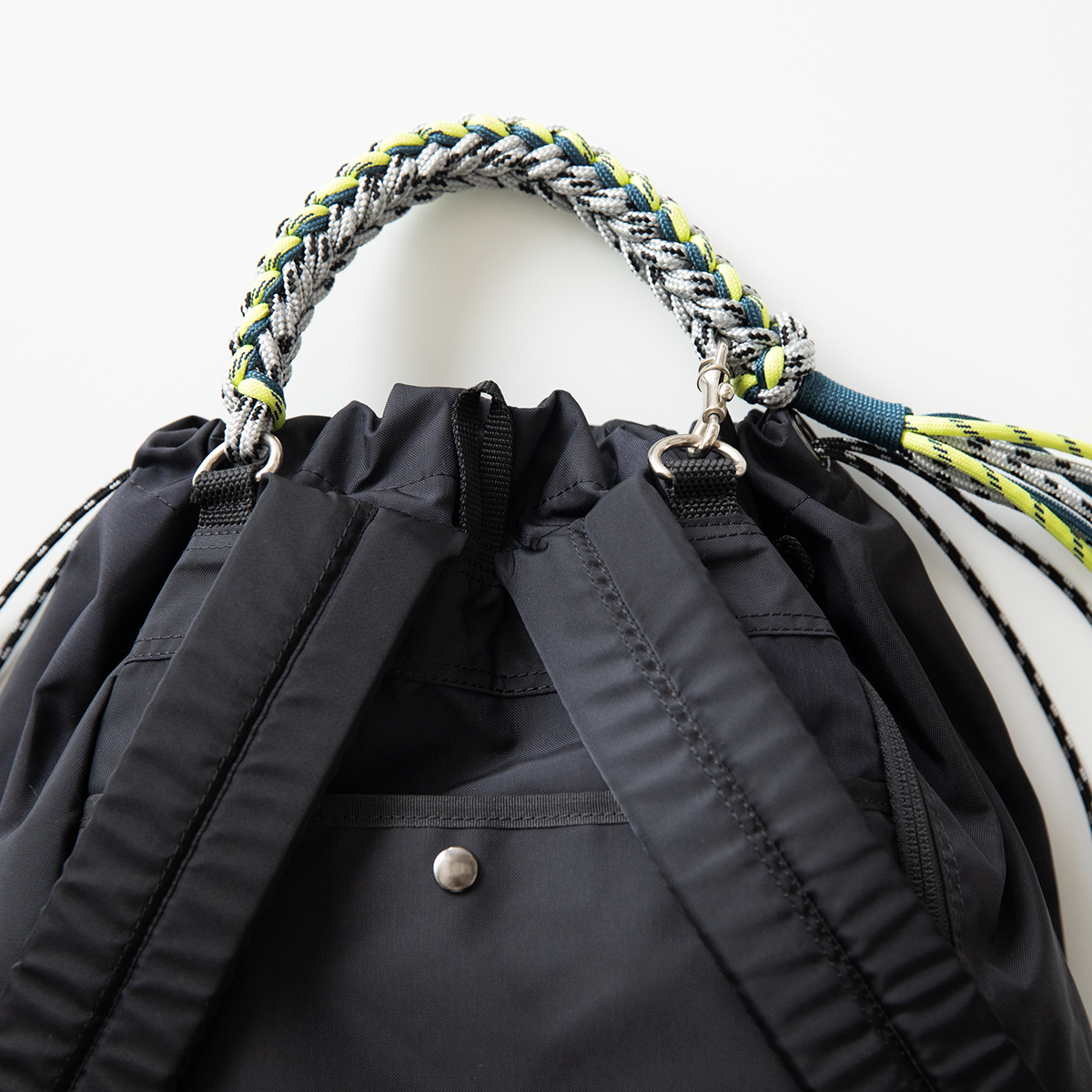 3色のコード(ひも)で編んだハンドルがついた