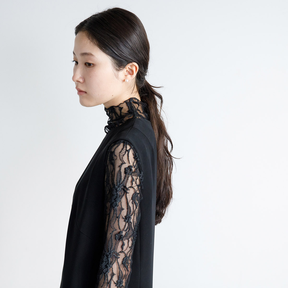 レースプルオーバー(ブラック・38)/SAQUI