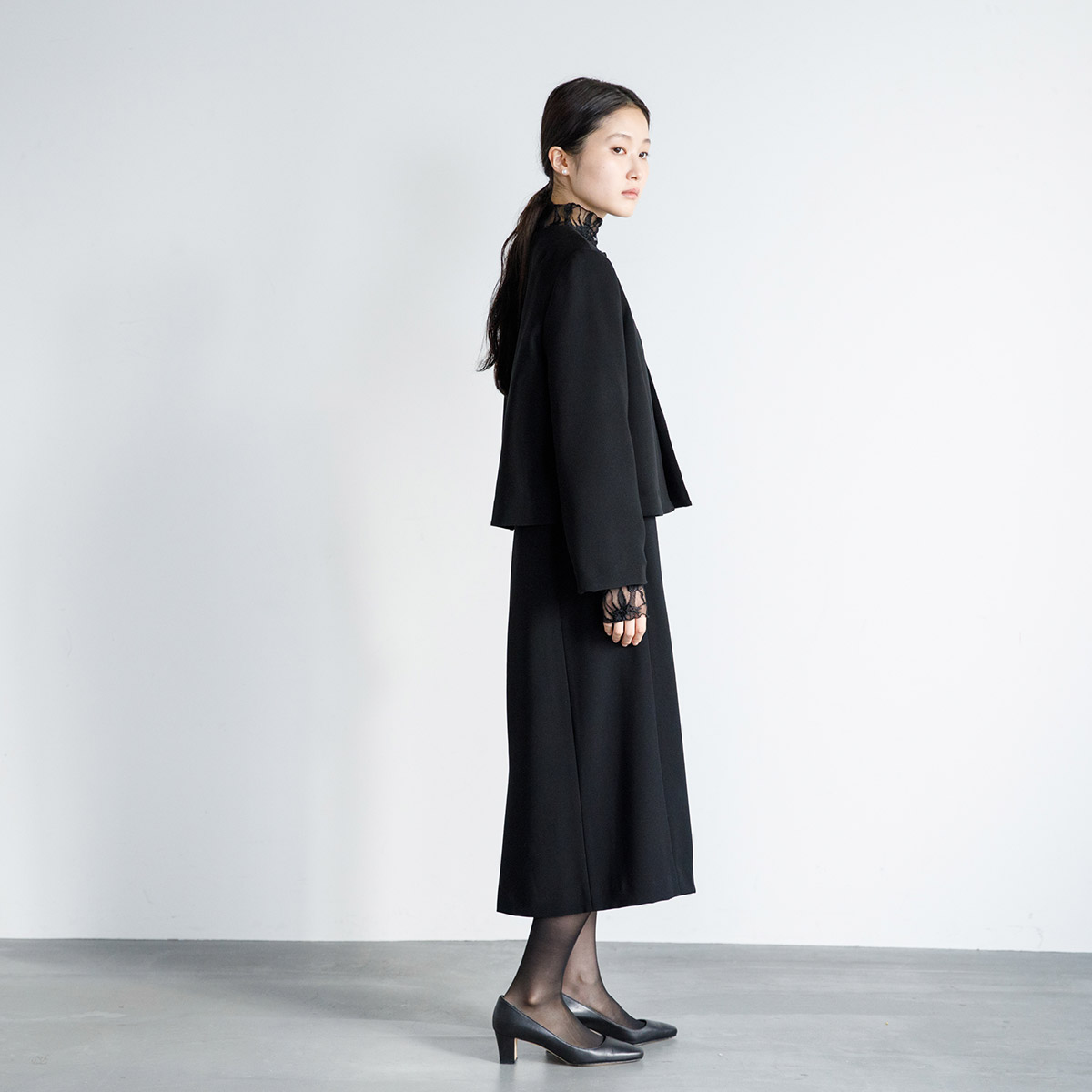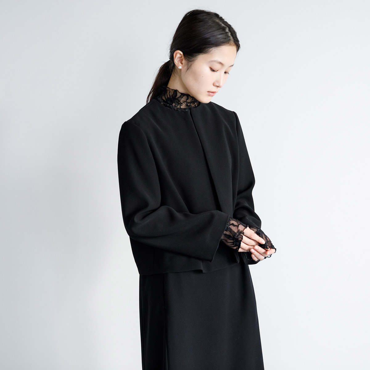 ボレロ型のレースブラウスに合わせるとエレガント。