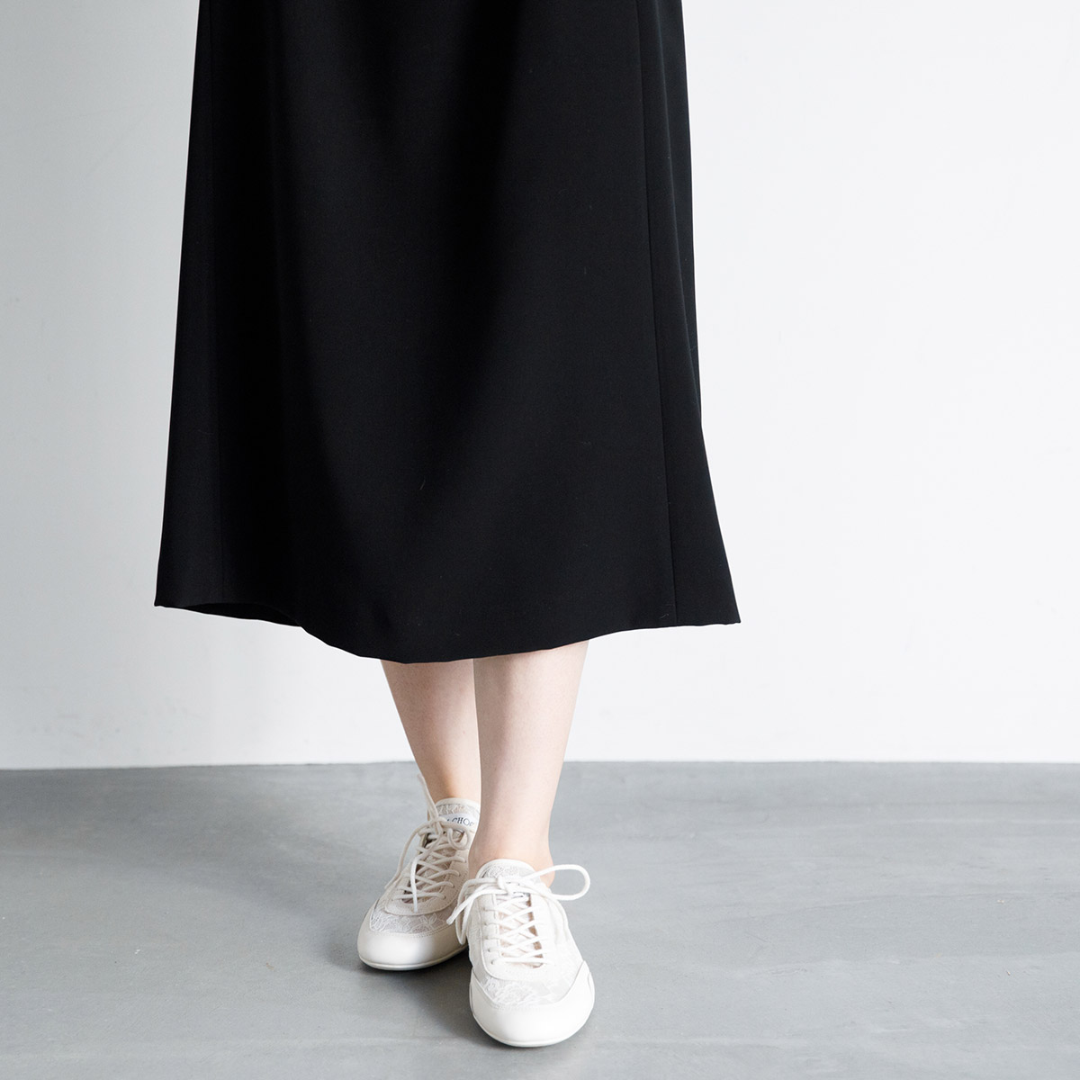 丈は膝下まで隠れるミモレ丈。