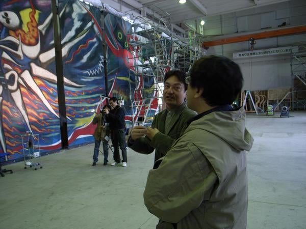 向こう側の二人は「ほぼ日」の取材版。