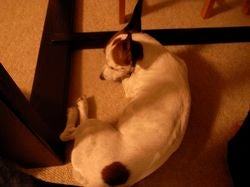 足下で寝る用意をしています。