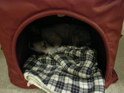 犬の家で寝ています。