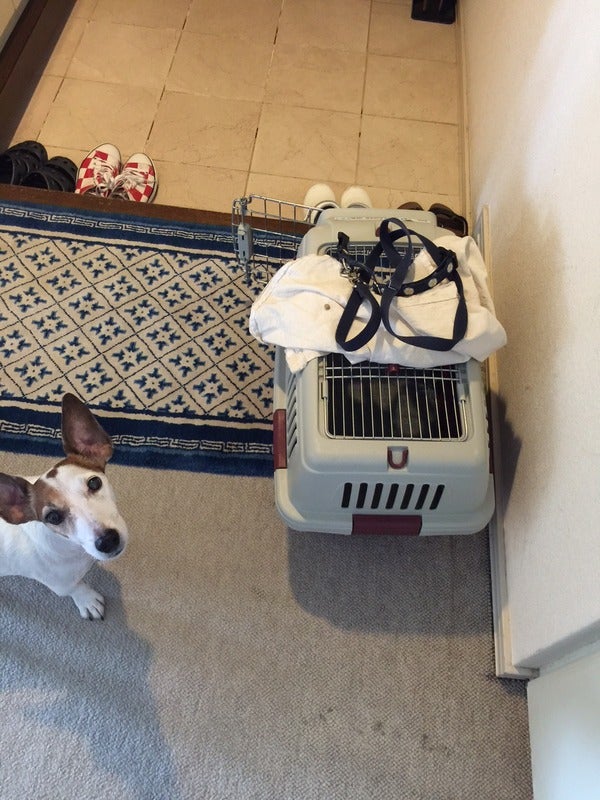 犬は高いところに乗せられました。