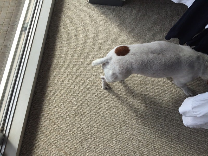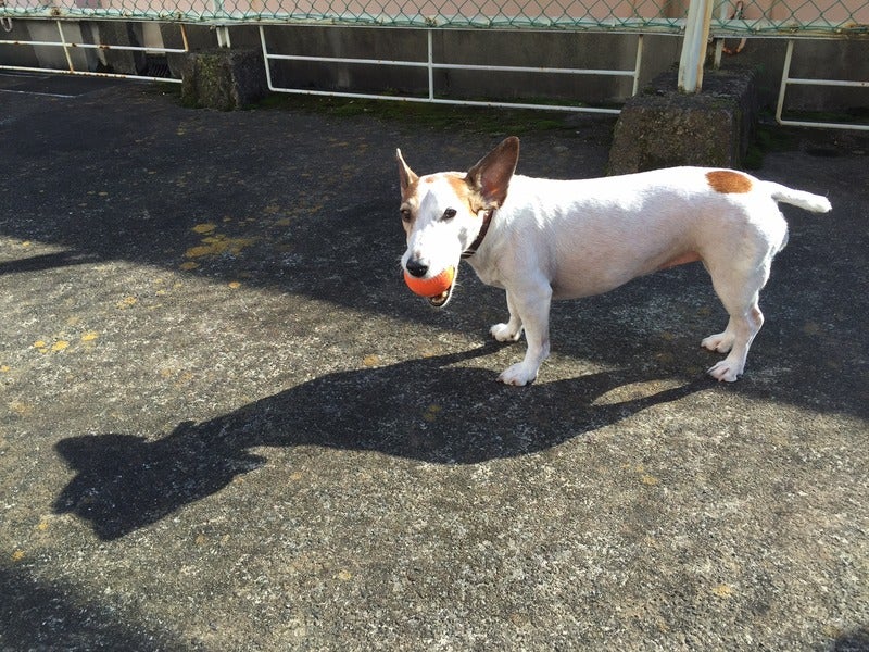 ボールをくわえてたたずみました。
