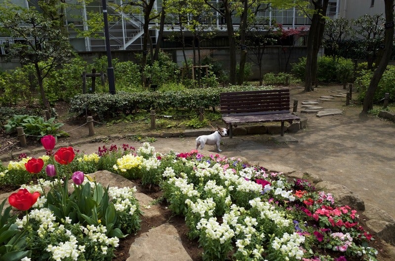 公園の花は背丈が低いので、
